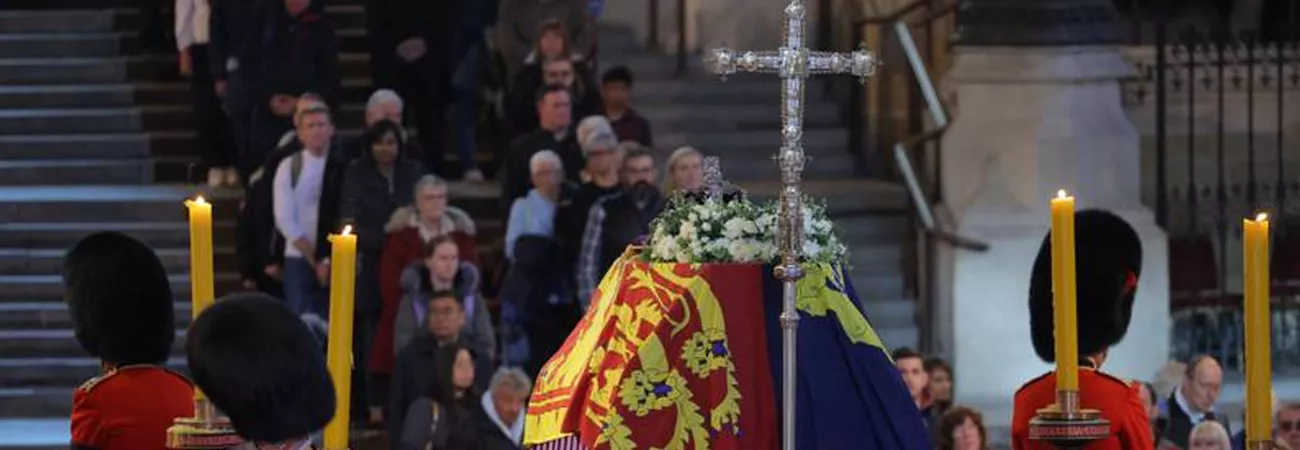 برطانیہ، ملکہ کے تابوت سے شاہی جھنڈا اتارنے...
