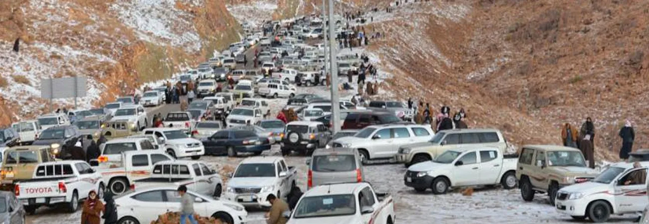 سعودی عرب کے تبوک ریجن میں شدید برف باری
