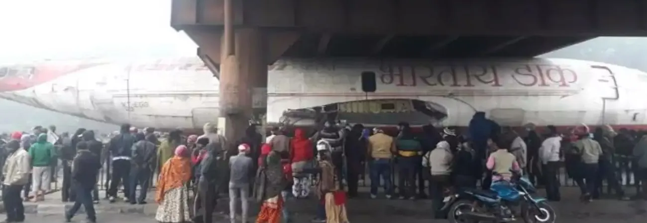 بھارت میں مسافر طیارہ پل کے نیچے پھنس گیا