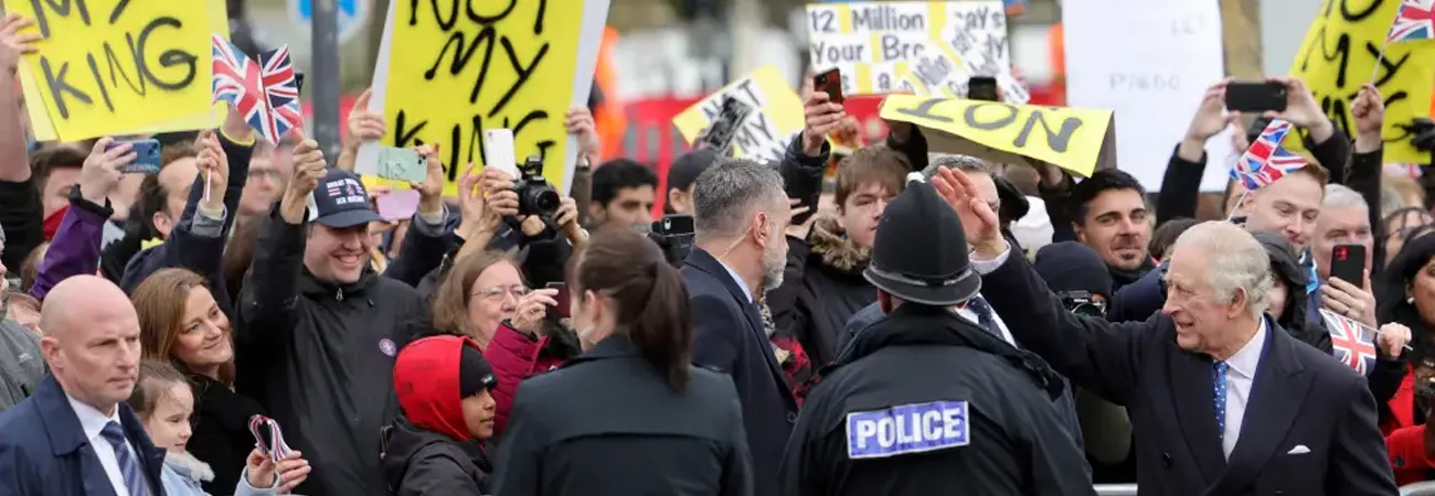 شاہ چارلس کو کولچیسٹر دورے پر مظاہرین کے طنز...
