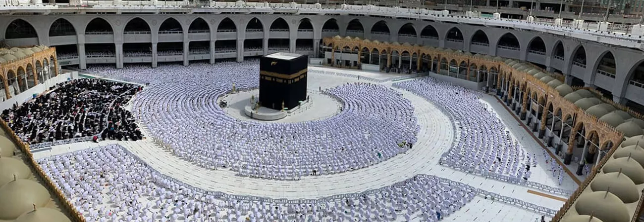 مسجدالحرام میں زائرین اور نمازیوں کے گروپ کو...