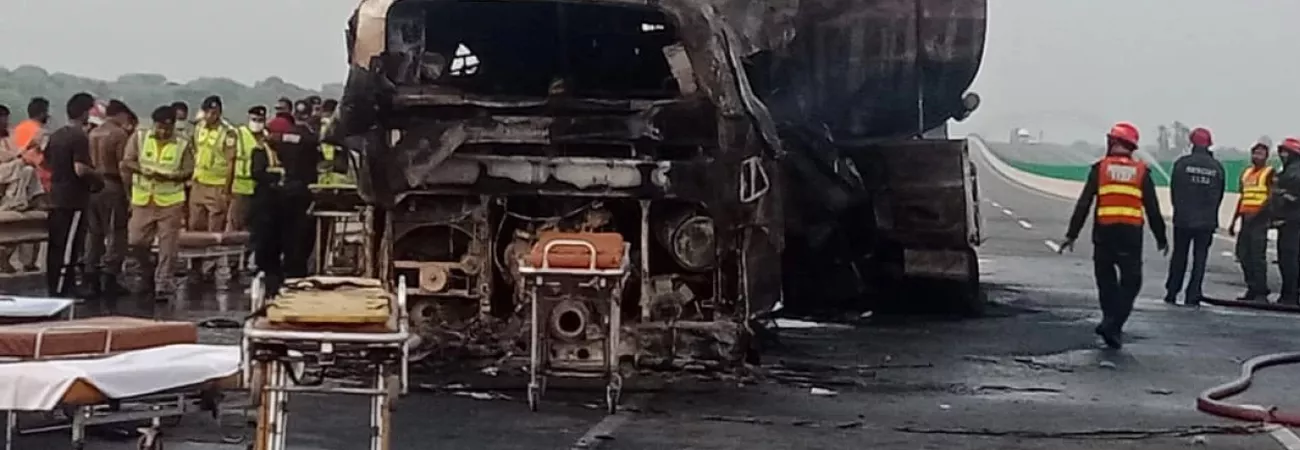 ملتان سکھر موٹروے پر بس اور آئل ٹینکر میں خو...