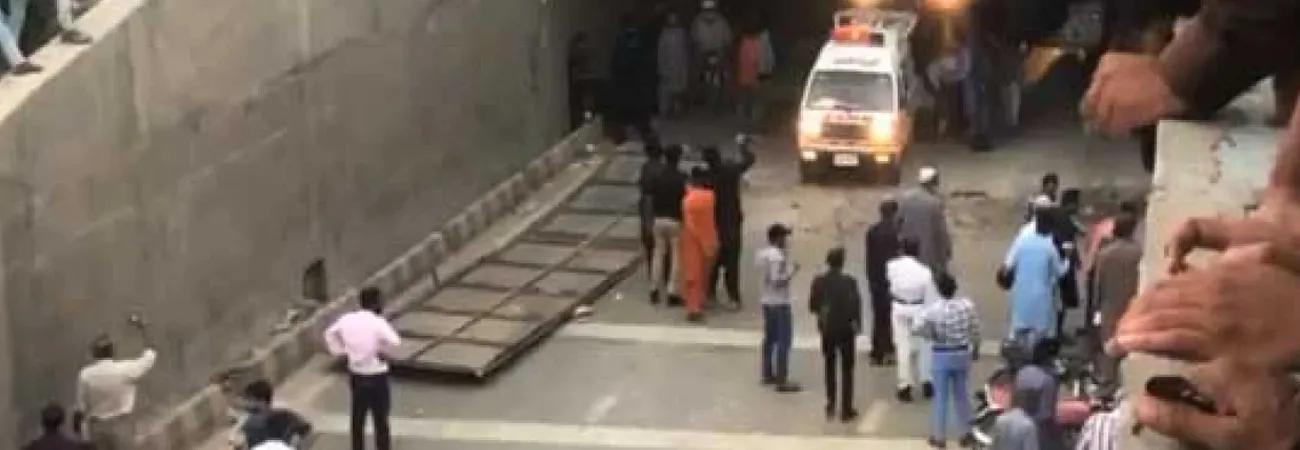 کراچی،ناظم آباد انڈرپاس پر لگا سائن بورڈ گرن...