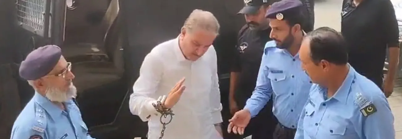 شاہ محمود قریشی کو ہتھکڑی لگا کر جوڈیشل کمپل...