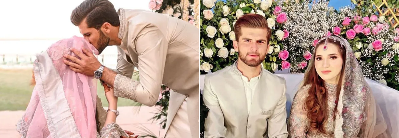 شاہین نے شادی کے بعد اہلیہ انشا کے ہمراہ تصو...