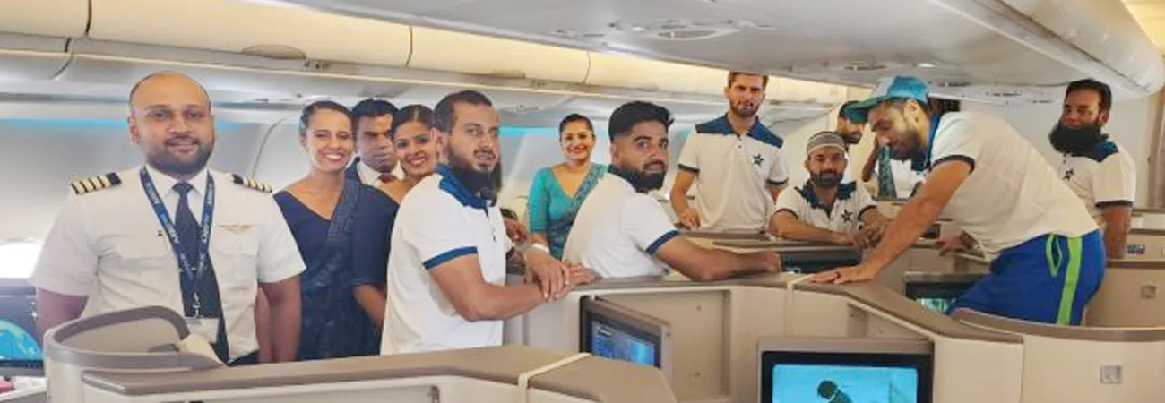 پاکستان کرکٹ ٹیم چارٹرڈ فلائٹ سے کولمبو سے ل...