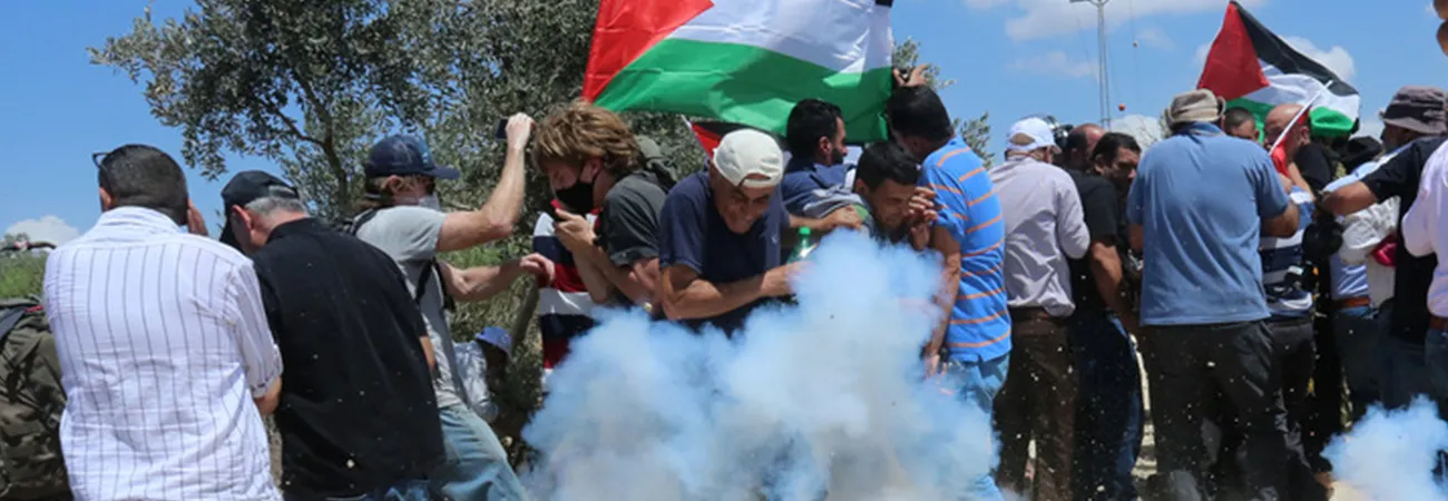 مغربی کنارے کے شہر طولکرم کے نزدیک یہودی آبادکاری میں توسیع کیخلاف احتجاج کے دوران مظاہرین اسرائیلی فوجیوں کی جانب سے پھینکی گئی آنسو گیس سے بچنے کیلئے بھاگ رہے ہیں۔(شِنہوا)