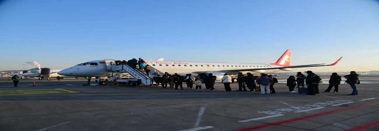 چین کے شمال مشرقی صوبے لیائوننگ کے شہر دالیان کے دالیان بین الاقوامی ہوائی اڈے پر مسافر جاپان کے کیتاکیوشو جانے والی پرواز پر سوار ہو رہے ہیں۔(شِنہوا)