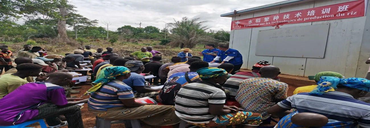 آئیوری کوسٹ ، ڈویو میں چین کی زرعی ٹیکنالوجی تعاون ٹیم کے ماہرین مقامی کسانوں کو تربیت دے رہے ہیں۔(شِنہوا)