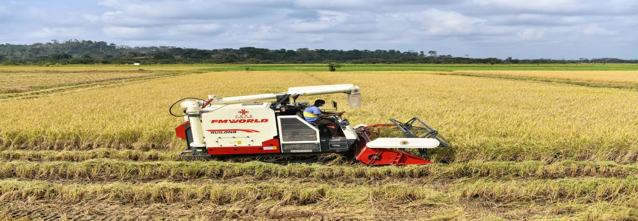 آئیوری کوسٹ، ڈیوو کے گیگویڈو ہائیڈرو زرعی علاقے میں ایک کسان مشین کے ذریعے چاول کی فصل کاٹ رہا ہے۔(شِنہوا)