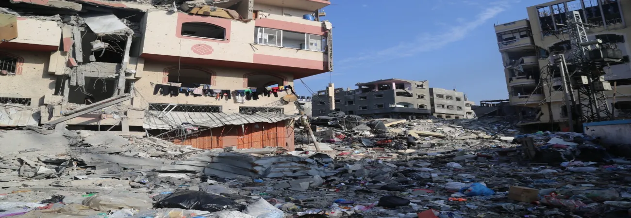 غزہ کی پٹی کے شمالی قصبے بیت لاہیا میں اسرائیلی حملوں میں تباہ ہونے والی عمارتیں دیکھی جاسکتی ہیں۔(شِنہوا)