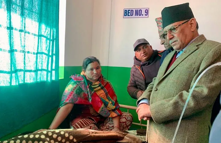 نیپالی وزیر اعظم پشپا کمل دہل ضلع جاجر کوٹ کے ہسپتال میں زلزلے میں زخمی ہونے والی خاتون کی عیادت کر رہے ہیں۔(شِنہوا)
