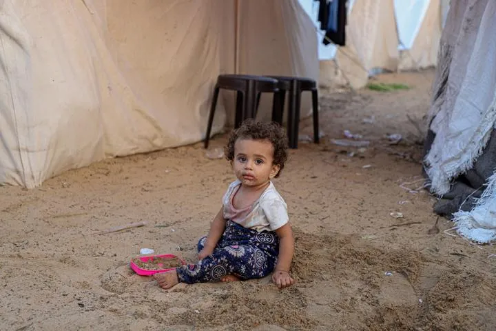 ایک فلسطینی بچہ غزہ کی جنوبی پٹی کے شہر خان یونس میں اقوام متحدہ کی ریلیف اینڈ ورکس ایجنسی برائے فلسطینی پناہ گزین (یو این آرڈبلیو اے) کے کیمپ میں مٹی کے ساتھ کھیلتے ہوئے۔(شِنہوا)