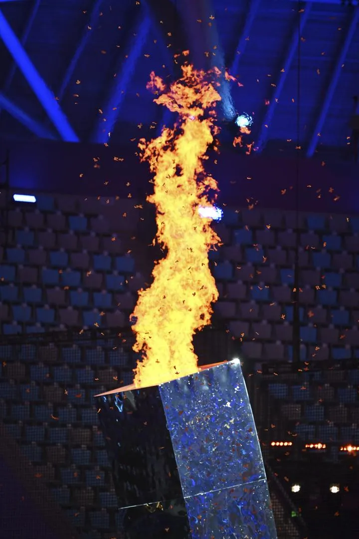 مقامی لیانگ ژو ثقافت کا حصہ ایک ڈیجیٹل "ڈیوائن برڈ " شعلے کی طرف لپکا اور مشعل جلنے تک گھومتا رہا اور پھر ہانگ ژو ایشیئن پیرا گیمز کے مسکوٹ "فی فی" میں تبدیل ہوگیا۔