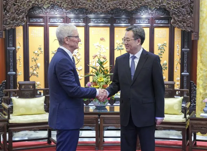 چین ، دارالحکومت بیجنگ میں چین کے نائب وزیر اعظم  اور کمیونسٹ پارٹی آف چائنہ کی مرکزی کمیٹی کے سیاسی بیورو کی قائمہ کمیٹی کے رکن ڈینگ شوئے شیانگ نے ایپل کے سی ای او ٹم کک سے ملاقات کی۔ (شِنہوا)