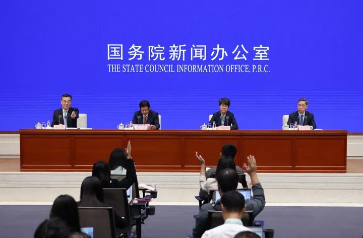 بیجنگ میں اسٹیٹ کونسل انفارمیشن آفس کی طرف سے "دی بیلٹ اینڈ روڈ انیشی ایٹو: مشترکہ مستقبل کی عالمی برادری کا ایک اہم ستون" کے عنوان سے ایک وائٹ پیپر سے متعلق  پریس کانفرنس کے انعقاد کا منظر۔(شِنہوا)