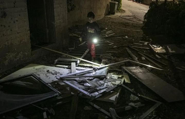 یروشلم کے مغرب میں ابو گوش گاؤں میں راکٹوں سے تباہ شدہ عمارتوں کے ملبے سے ایک بچہ گزر رہا ہے۔(شِنہوا)