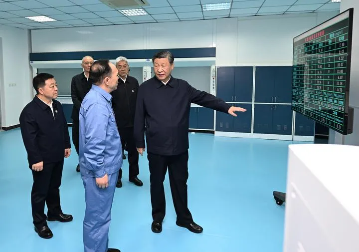 کمیونسٹ پارٹی آف چائنہ کی مرکزی کمیٹی کے جنرل سیکرٹری شی جن پھنگ چینی صوبہ جیانگ شی کے جیو جیانگ میں سینو پیک جیو جیانگ کمپنی کا معائنہ کر رہے ہیں۔(شِنہوا)