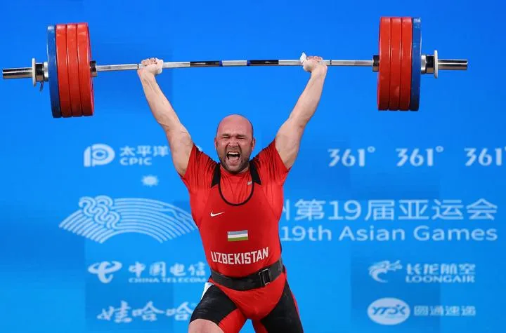 چین کے صوبہ ژے جیانگ کے شہر ہانگ ژومیں 19ویں ایشین گیمز میں مردوں کے ویٹ لفٹنگ کے109 کلوگرام گروپ اے میچ کے دوران ازبکستان کے روسلان نوردینوف مقابلہ کر رہے ہیں۔(شِنہوا)