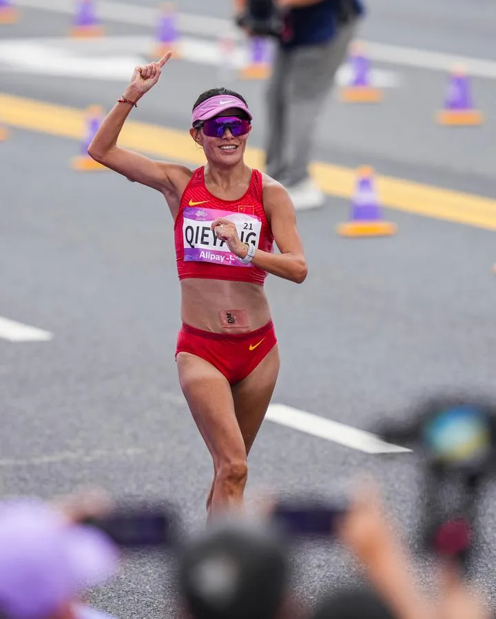 چین، مشرقی صوبے ژے جیانگ کے شہر ہانگ ژو میں جاری 19 ویں ایشیائی کھیلوں کے دوران مکسڈ ٹیم کی 35 کلومیٹر تیز پیدل مقابلے کے بعد چین کی چھی یانگ شی جی جشن منارہی ہیں ۔ (شِنہوا)