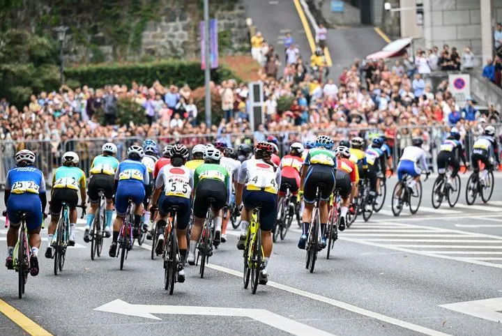 چین کےمشرقی صوبہ ژی جیانگ کی چھوان آن کاؤنٹی میں 19ویں ایشین گیمز میں سائیکلنگ روڈ کی خواتین روڈ ریس کے دوران ایتھلیٹس مقابلہ کر رہی ہیں۔(شِنہوا)