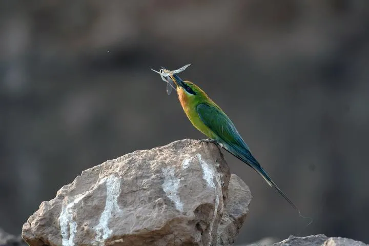 گلگت بلتستان کے علاقے ہنزہ میں شہد کی مکھی کھانے والا نیلی دم والا پرندہ دیکھا جاسکتا ہے۔ (شِنہوا)