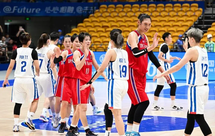 چین کے مشرقی صوبہ ژی جیانگ کے شہر ہانگ ژو میں جاری19ویں ایشین گیمزمیں چینی تائی پے اورعوامی جمہوریہ کوریا(ڈی پی آر کے) کے درمیان خواتین کے باسکٹ بال کے گروپ سی  کے ابتدائی راؤنڈ میچ  کے بعد دونوں ٹیموں کی کھلاڑی ایک دوسرے کی حوصلہ افزائی کر رہی ہیں۔(شِنہوا)