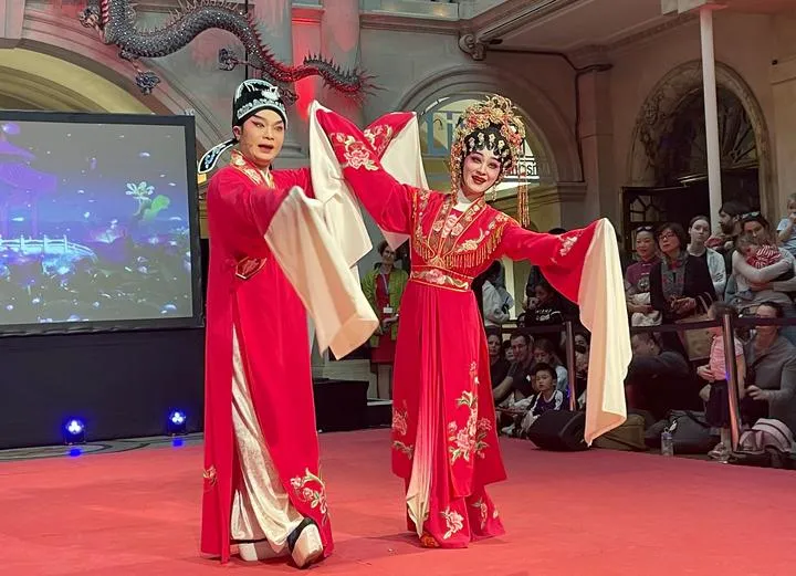 برطانیہ ، برسٹول میں آمدہ چینی وسط خزاں تہوار بارے "آل انڈر ون مون" کے موضوع کے تحت  منعقدہ کینٹونیز اوپرا میں فنکار فن کا مظاہرہ کررہے ہیں ۔(شِنہوا)