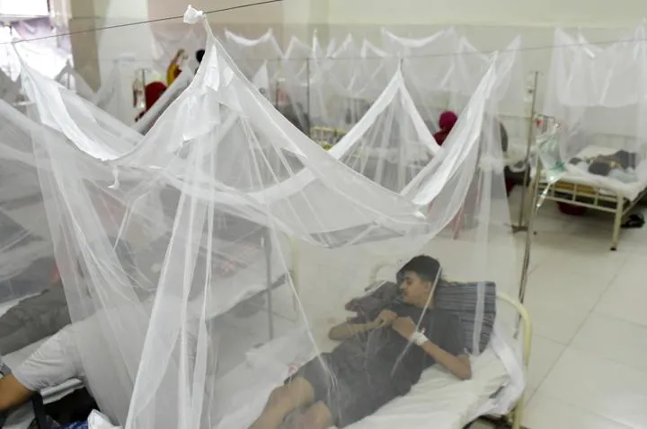 بنگلہ دیش کے شہر ڈھاکہ کے ایک ہسپتال میں ڈینگی کے مریض مچھر دانی کے اندر زیرعلاج ہیں جہاں ڈینگی کے3 ہزار 84 نئے کیسز اور17 نئی اموات رپورٹ ہوئیں جس سے اس سال اب تک اموات کی تعداد800 سےتجاوزکرگئی۔(شِنہوا)