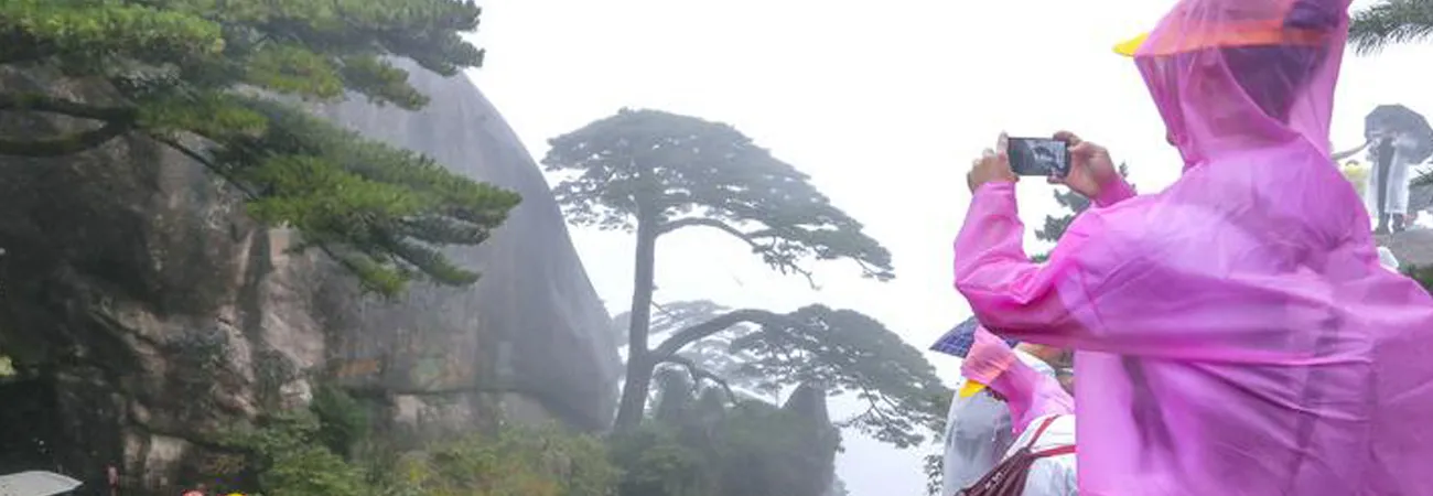 چین ، مشرقی صوبے انہوئی کے شہر ہوانگ شان میں سیاح ہوانگ شان پہاڑی خوبصورت علاقے کا دورہ  کر رہے ہیں۔ (شِنہوا)