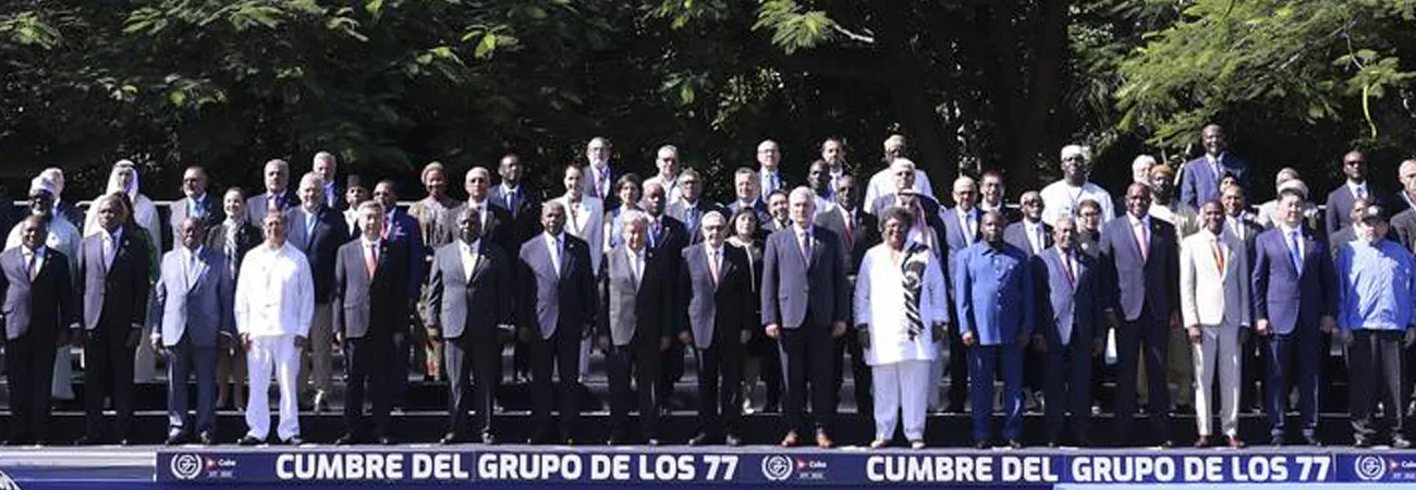 کیوبا کے شہر ہوانا میں گروپ آف 77 (جی 77) اور چین کے سربراہ اجلاس میں شریک مندوبین گروپ فوٹو بنوا رہے ہیں۔(شِنہوا)