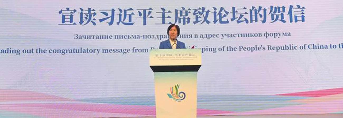 چینی عوامی سیاسی مشاورتی کانفرنس کی قومی کمیٹی کی نائب چیئرپرسن شین یو ئے یو ئے نے افتتاحی تقریب میں شرکت کی اور مر کزی خطاب سے قبل چینی صدر شی جن پھنگ کا فورم کے نام مبارکباد کا پیغام پڑھ کر سنایا۔