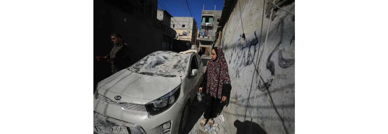 غزہ کی پٹی کے جنوبی شہر رفح میں اسرائیلی فضائی حملے کے بعد ایک خاتون تباہ ہونے والی کار کو دیکھ رہی ہے۔(شِنہوا)