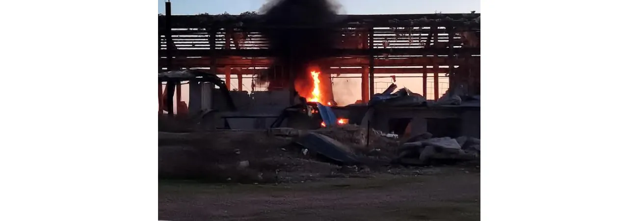 شام کے شمالی شہر حلب میں حلب بین الاقوامی ہوائی اڈے کے قریب اسرائیلی میزائل حملے کے بعد آگ کے شعلے بلند ہورہے ہیں۔ (شِنہوا)
