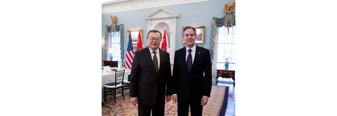 امریکہ ، واشنگٹن ڈی سی میں امریکی وزیرخارجہ انتھونی بلنکن سے کمیونسٹ پارٹی آف چائنہ کی مرکزی کمیٹی کے بین الاقوامی شعبے کے سربراہ لیو جیان چھاؤملاقات کرتے ہوئے۔ (شِںہوا)