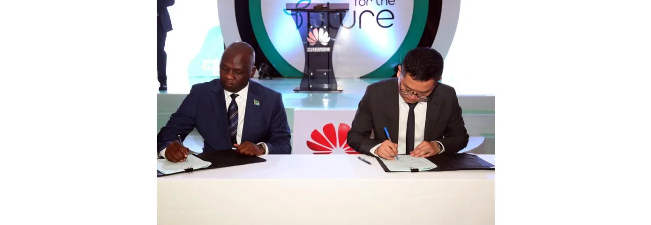 تنزانیہ کے شہردار السلام  میں ہواوے اور تنزانیہ کی وزارت اطلاعات، مواصلات وانفارمیشن ٹیکنالوجی کے درمیان مفاہمت کی یادداشت پر دستخط کیے جارہے ہیں۔(شِنہوا)