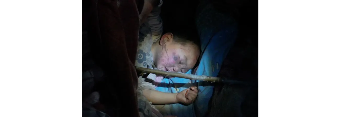 چین کے شمال مغربی صوبے گانسو کے لین شیا ہوئی خوداختیار پریفیکچر کی جی شی شان باؤآن، ڈونگ شیانگ ،سالارخوداختیارکاؤنٹی میں قائم ایک عارضی اسپتال میں ایک زخمی بچہ علاج کے بعد سورہا ہے۔ (شِنہوا)