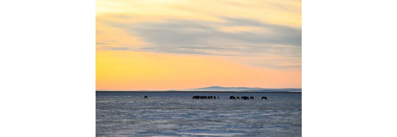 چین ، شمالی اندرون منگولیا خود اختیار خطے کے شی لنگول سبزہ زار میں موسم سرما کا ایک نظارہ ۔ (شِنہوا)