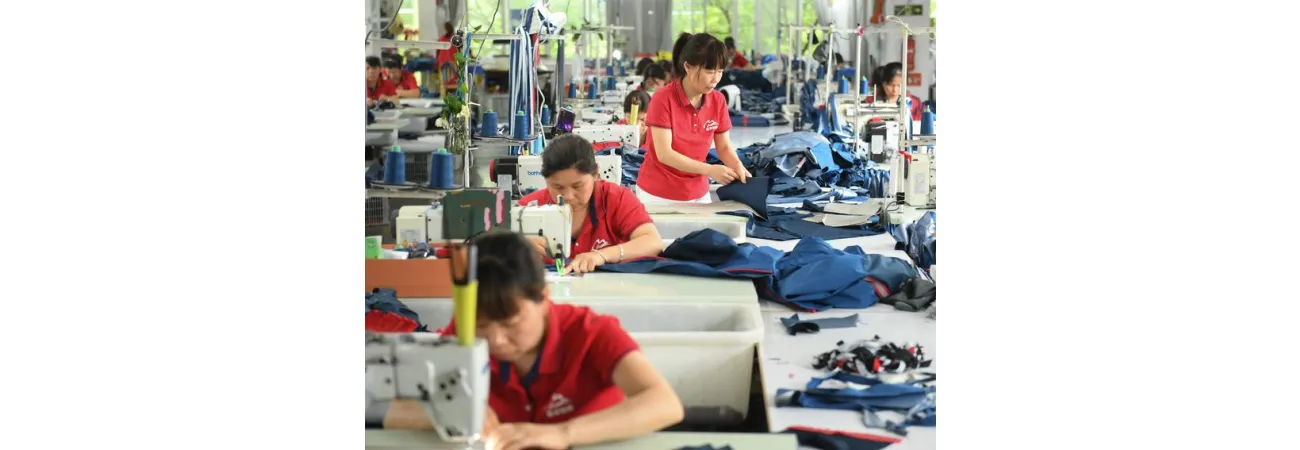 چین، مشرقی صوبے ژی جیانگ کی کاؤنٹی سان مین جیکٹ تیار کرنے والی ایک کارخانے میں خواتین کام کررہی ہیں۔ (شِنہوا)