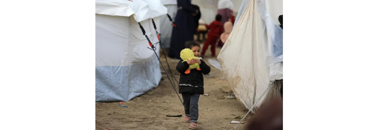 غزہ کی پٹی کے جنوبی شہر رفح میں ایک فلسطینی بچہ عارضی پناہ گاہ میں اپنے کھلونے کے ساتھ دیکھا جاسکتا ہے ۔(شِنہوا)
