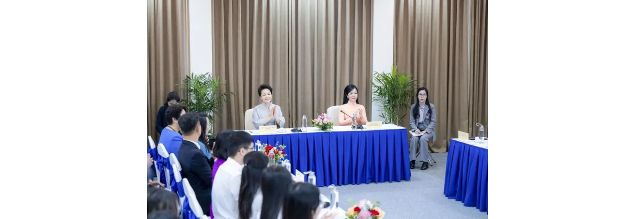 چینی خاتون اول  پھینگ لی یوآن نے ویتنام کے صدر وو وان تھونگ کی اہلیہ  فان تھی تھان تام کے ہمراہ ویتنام نیشنل یونیورسٹی، ہنوئی کا دورہ کیا۔(شِنہوا)