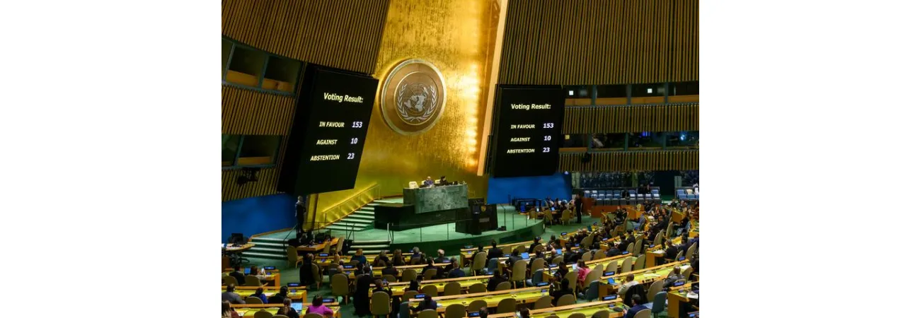 اقوام متحدہ(شِنہوا)اقوام متحدہ کی جنرل اسمبلی نے  غزہ میں "انسانی بنیادوں پرفوری جنگ بندی" کا مطالبہ کرتے ہوئے ایک قرارداد منظور کی ہے۔