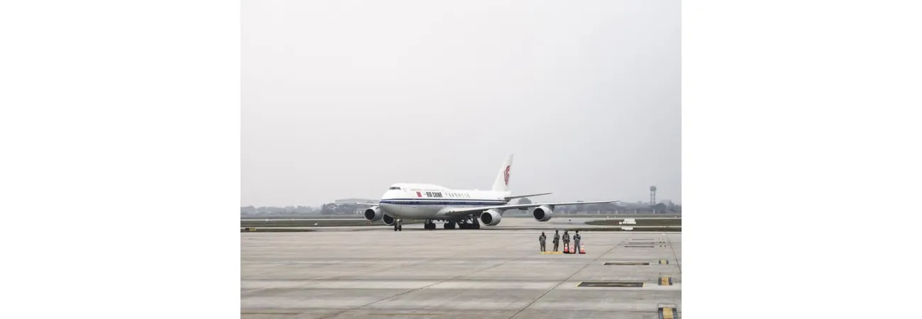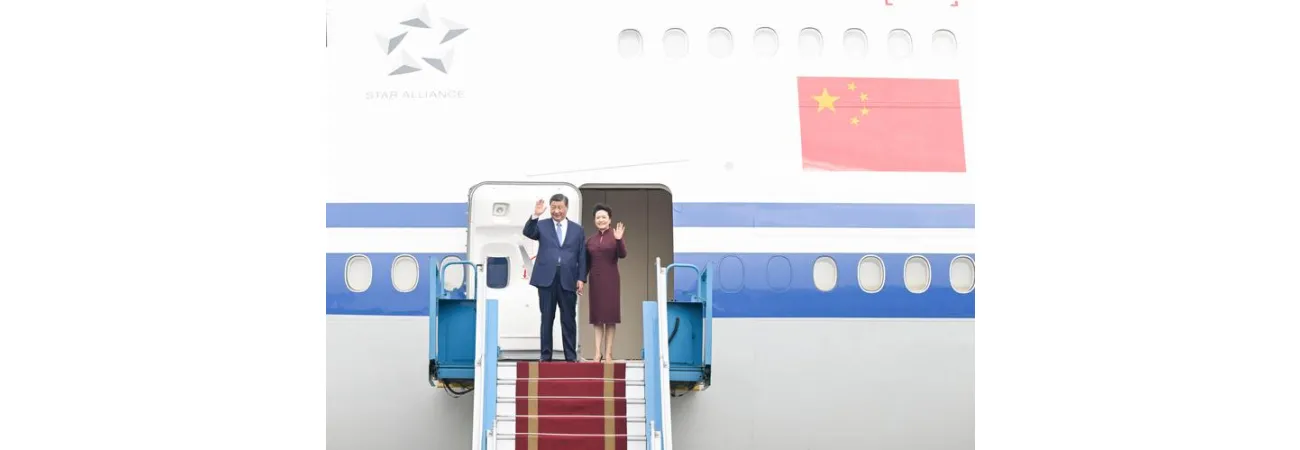 چینی صدر اور کمیونسٹ پارٹی آف چائنہ کی مرکزی کمیٹی کے جنرل سیکرٹری شی جن پھنگ سرکاری دورے پر ویتنام کے دارالحکومت ہنوئی پہنچنے پر انکے طیارے کا منظر۔ (شِنہوا)