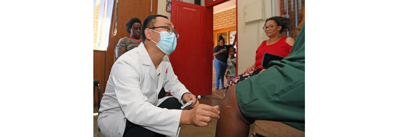 نمیبیا ،ونڈہوک میں ایس او ایس چلڈرن ولیج میں چینی میڈیکل ٹیم کا ایک رکن ایکوپنکچرکے طبی طریقےکے ذریعے علاج کر رہا ہے۔ (شِنہوا)