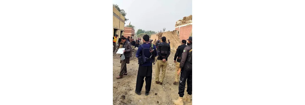 خیبرپختونخوا کے ضلع ڈیرہ اسماعیل خان میں سیکورٹی اہلکاراور امدادی کارکن حملے کی جگہ کا معائنہ کرتے ہوئے۔(شِنہوا)