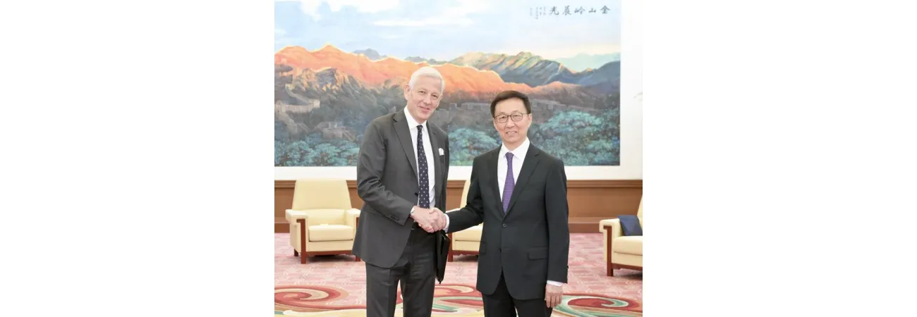 چین کے نائب صدر ہان ژینگ بیجنگ میں کان کنی گروپ ریو ٹنٹو کے چیئرمین ڈومینک بارٹن سے ملاقات کرتے ہوئے۔(شِنہوا)