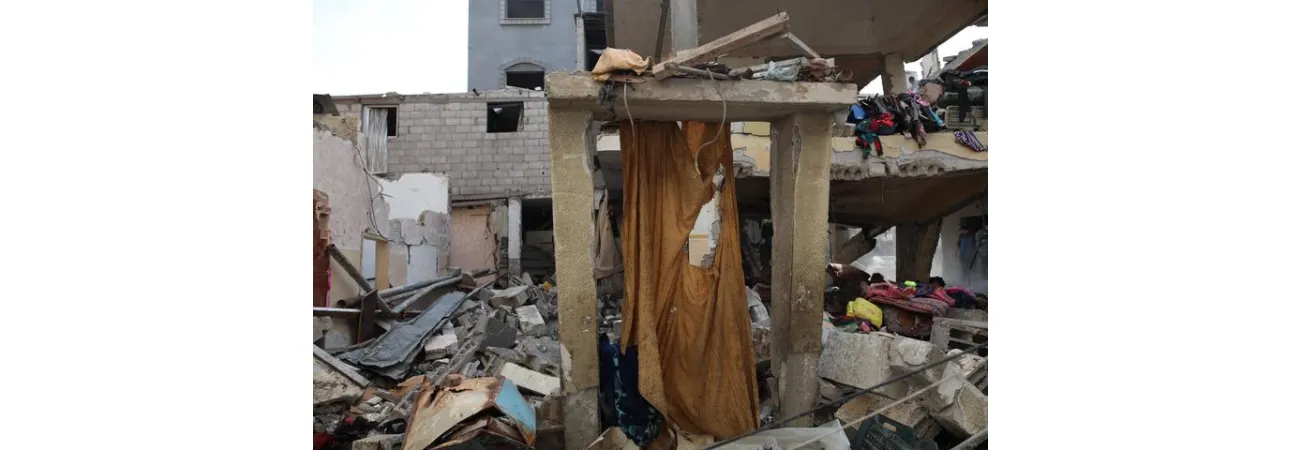 وسطی غزہ کی پٹی کے مغازی پناہ گزین کیمپ پر اسرائیلی فضائی حملے کے بعد تباہ شدہ عمارتیں دیکھی جاسکتی ہیں۔(شِنہوا)