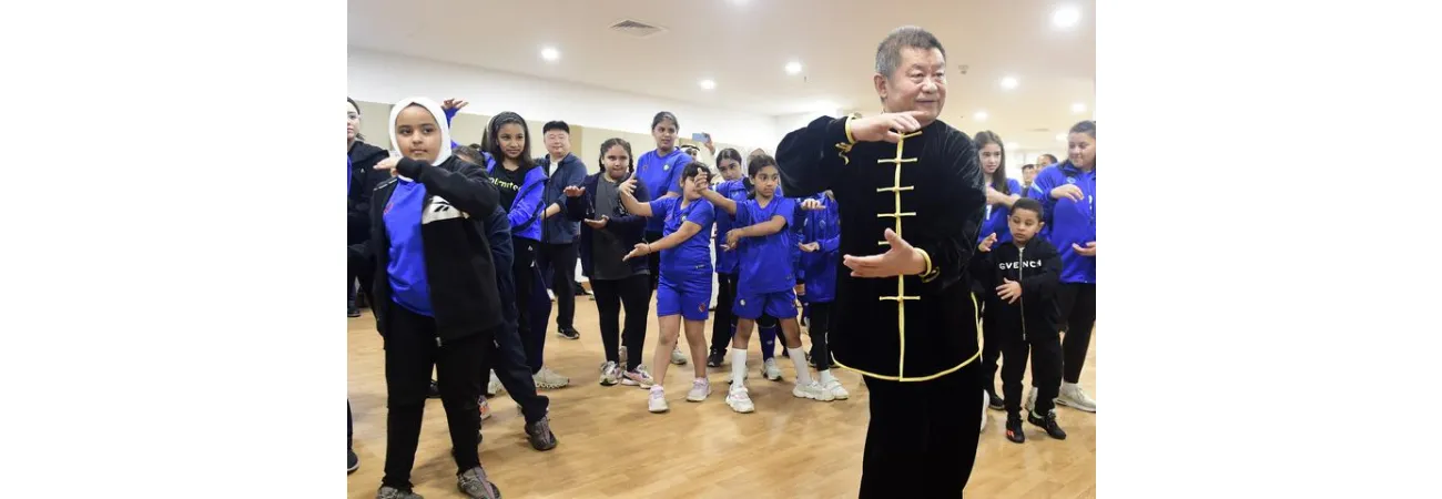 کویت کے حولی گورنریٹ میں نوجوان چینی ثقافتی مرکز میں تائیجی سیکھ رہے ہیں۔(شِنہوا)