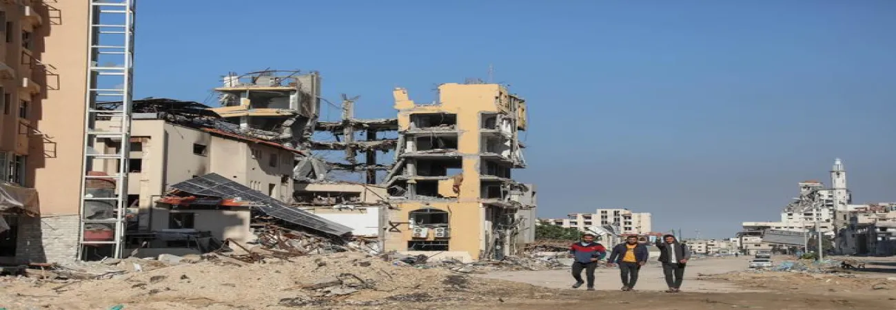 اسرائیلی حملوں سے غزہ شہر میں ہونے والی تباہی کا ایک منظر۔(شِنہوا)