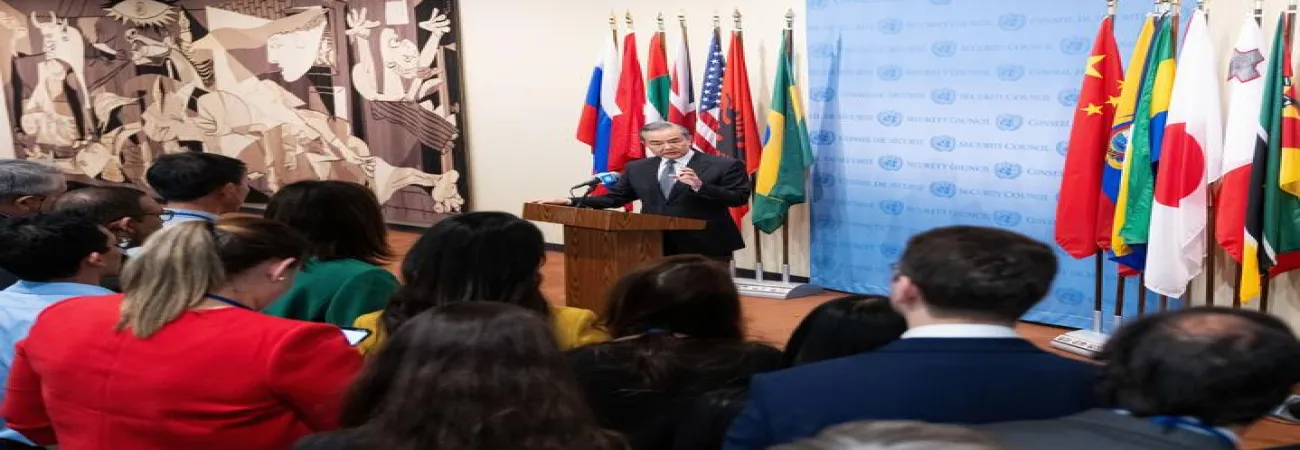 کمیونسٹ پارٹی آف چائنہ کی مرکزی کمیٹی کے سیاسی بیورو کے رکن وانگ نے فلسطین۔ اسرائیل تنازع پر اقوام متحدہ کی سلامتی کونسل کے ایک اعلیٰ سطح کے اجلاس کی صدارت کے بعد میڈیا سے گفتگو میں نے اس بات پر زور دیا کہ دو ریاستی حل ہی واحد راستہ ہے۔